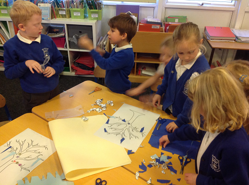 Now that winter is approaching, we discussed the signs of the changing seasons. We agreed that it is getting colder and much wetter! When it was Autumn, we discussed how the trees were changing. To take this further, we discussed how trees may appear in the winter months. Between us, we agreed that deciduous trees will have bare branches, and that they may become frosty, covered in snow and maybe even icicles. We then worked in small groups to try and create our own wintery trees using a selection of craft materials.