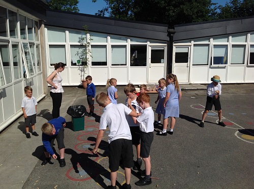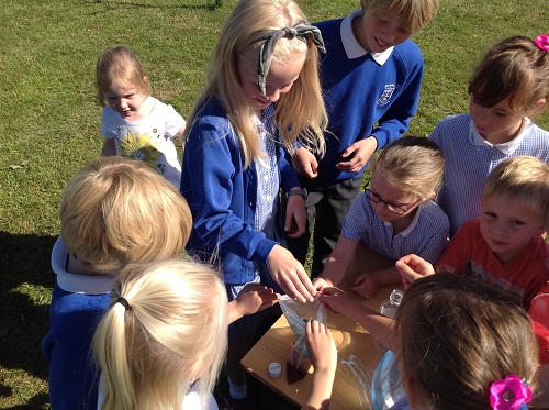 To tie in with this term’s learning theme of Out & About, we had a whole morning of science activities outside today! We rotated through four different activities, each designed to explore concepts and experiments which we couldn’t really have achieved inside our classrooms.